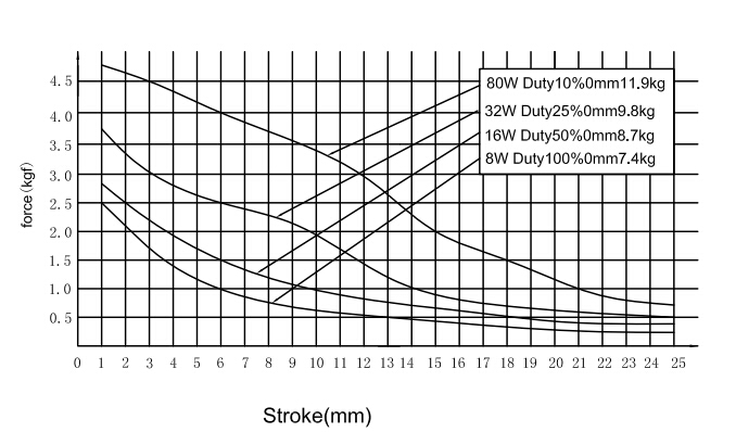 縱向:代表電磁鐵在對應(yīng)行程時的力量 單位為克(g)