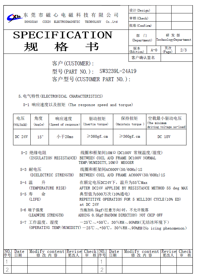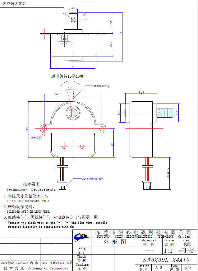 SW3239旋轉式電磁鐵從最初的選材到模具的生產,再到樣品的測試經過1年的時間之后才順利推向市場,此款旋轉電磁鐵的角度精確的±1度,響應的速度可以達到6毫秒。