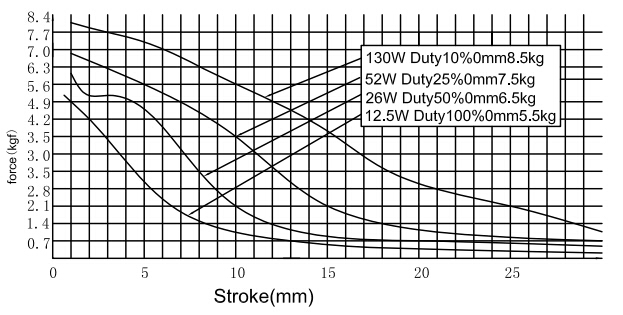 縱向:代表電磁鐵在對(duì)應(yīng)行程時(shí)的力量 單位為克(g)